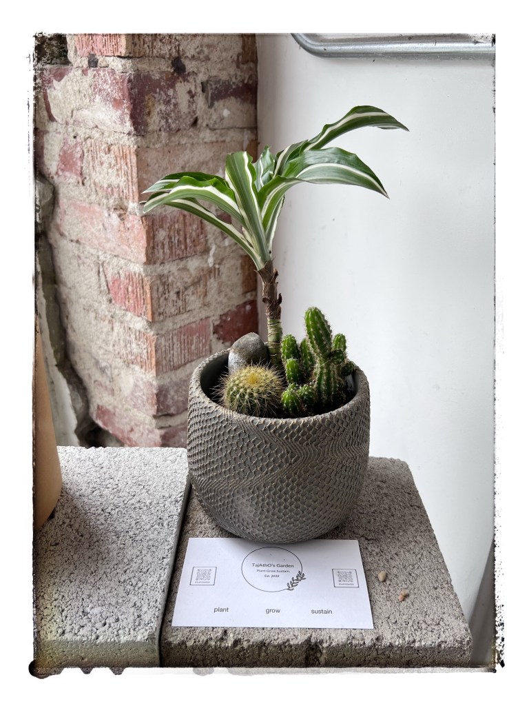 Dracaena essential properties are thought to be that of abundance and feminine energy. Dracaena is the perfect plants for any business and an excellent plant to have behind you in any Zoom meeting. Not only are you telling the world you’re a boss but that you are not to be trifled with. We plant the Dracaena with the Cacti as a balancer, Cacti essential properties are those of protection, healing, clarity, and strength something every boss needs. If you have anymore questions please follow us here. Be careful with the Dracaena around cats and dogs the leaves are toxic if ingested. If you have any comments or questions you can contact us here or scan below. Thank You for visiting TajAthO’s Garden