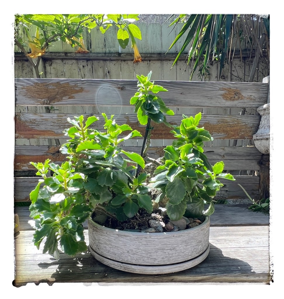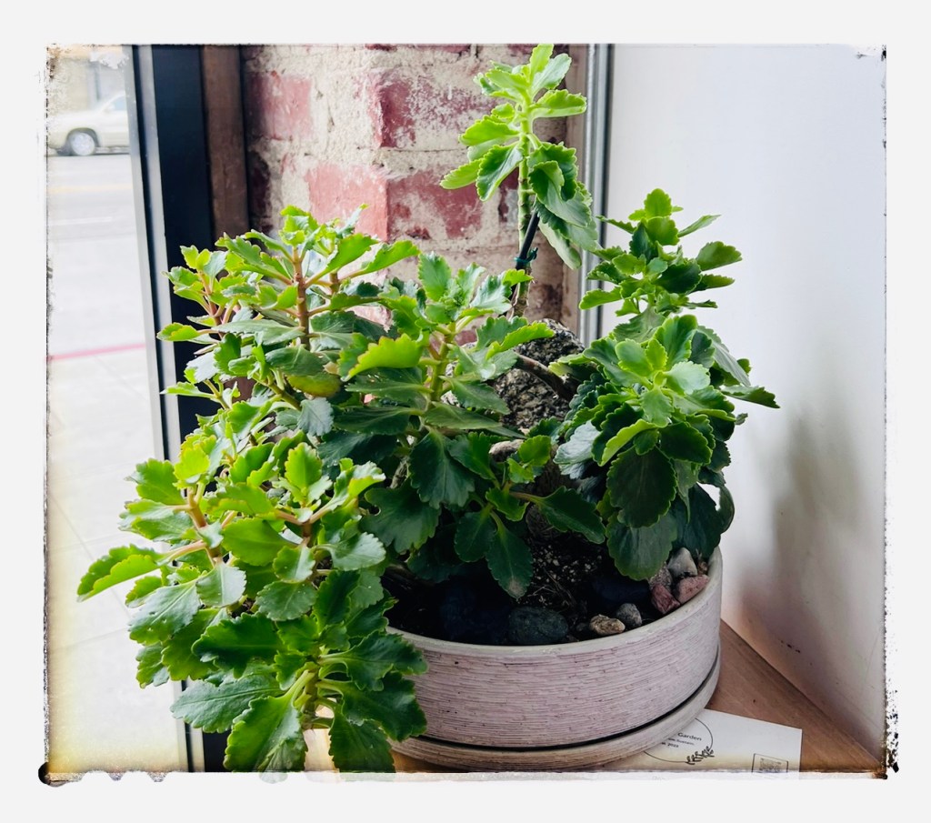 Kalanchoe is often associated with love, persistence, and prosperity. She can survive in most conditions and needs very little water. We didn’t put a price on her she is for display purposes only. We will be creating more Kalanchoe compositions in the future for purchase. Visit us when you can. Thank You for supporting small businesses like Black Ring Coffee